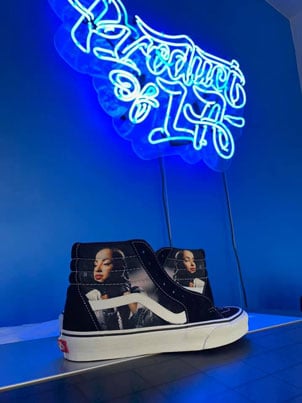 Sign is mounted on acrylic clear backing