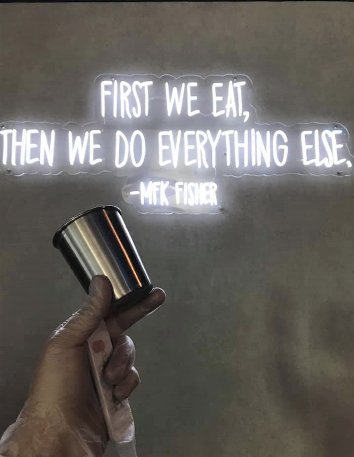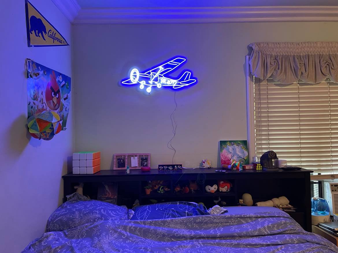 Sign comes with power adapter, remote controller with on/ off switch & dimmer, stand offs / hanging kits